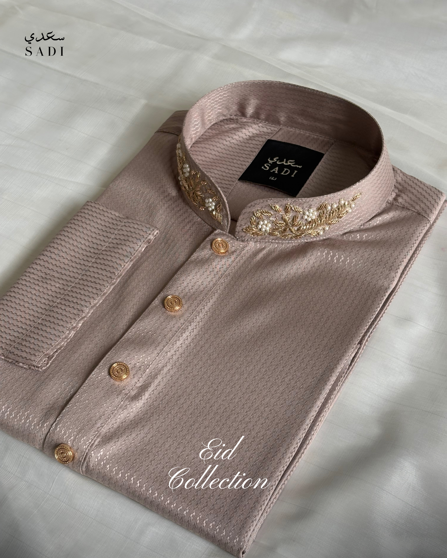 Finished with classic gold-toned buttons, the overall look feels ceremonial, luxurious, and unmistakably premium.